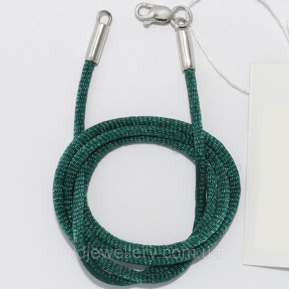 Шнурок для крестика или кулона. Замочек и окончания сделаны из серебра 925 пробы. На замочек и окончания нанесено покрытие из родия. Толщина-2мм. Вес-1.2гр. Длины: 45-50-55-60-65см.