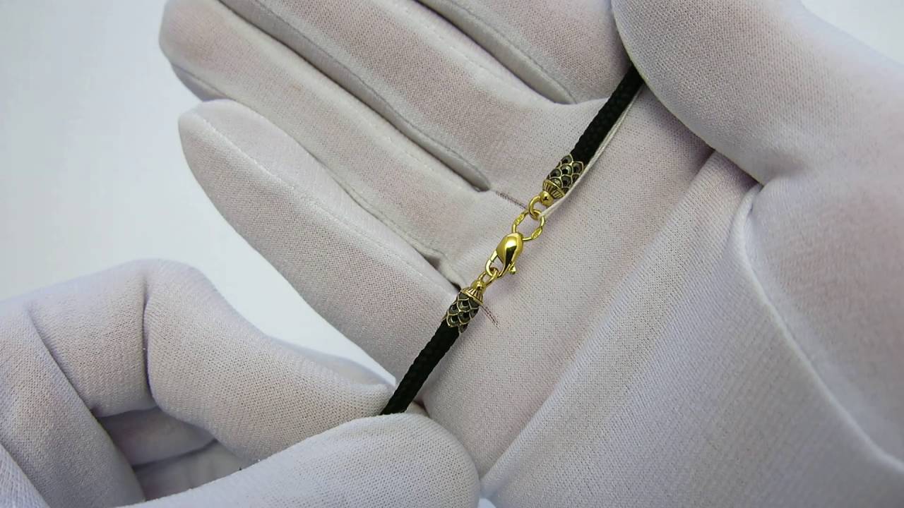 Шнурок универсальный. Замок и окончания сделаны из серебра 925 пробы. На замочек и окончания нанесено золотое покрытие и чернение. Толщина шнурка-3.5мм. Вес-3гр. Длины: 45-50-55-60-65-70см.