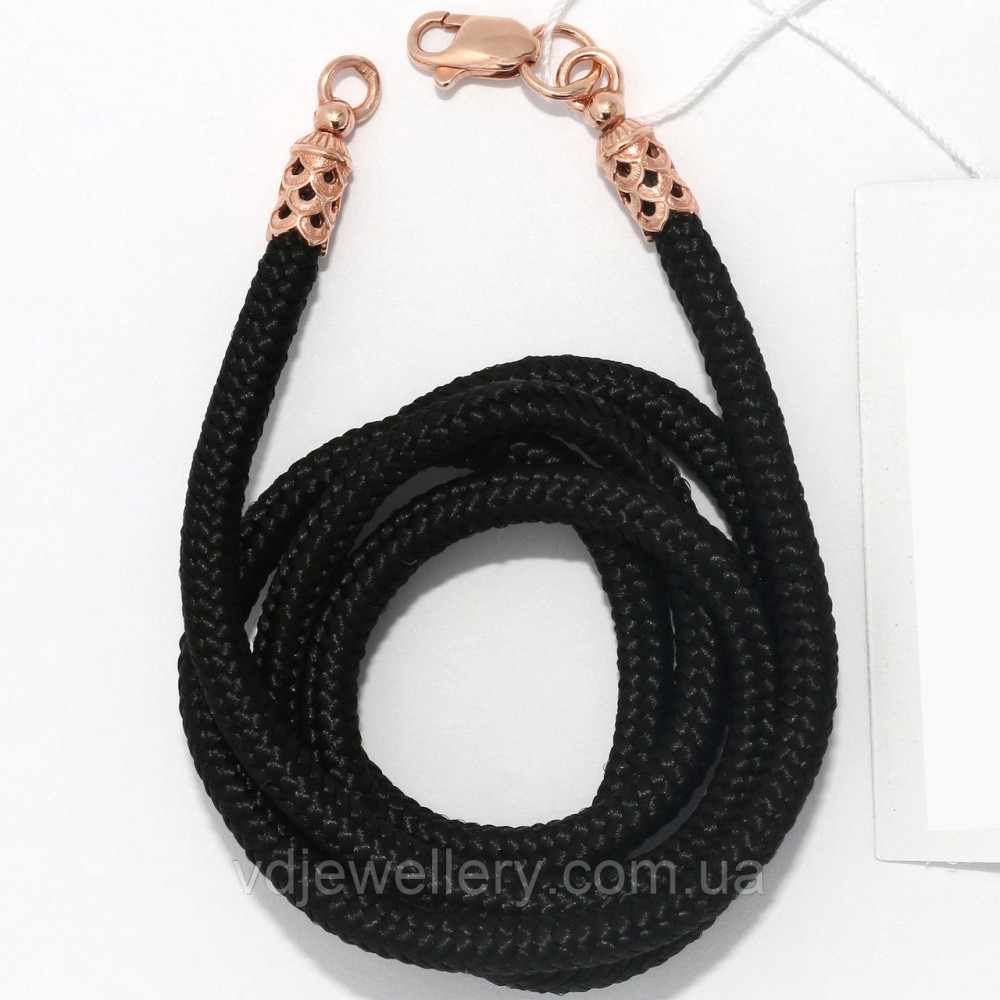 Шнурок универсальный. Замок и окончания сделаны из серебра 925 пробы. На замочек и окончания нанесено золотое покрытие 585 пробы. Толщина шнурка-3.5мм. Вес-3гр. Длины: 45-50-55-60-65-70см.