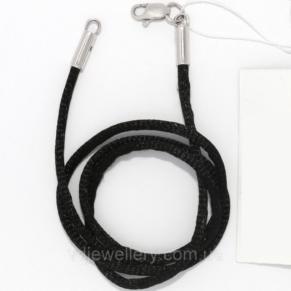 Шнурок для крестика или кулона. Замочек и окончания сделаны из серебра 925 пробы. На замочек и окончания нанесено покрытие из родия. Толщина-2мм. Вес-1.4гр. Длины: 45-50-55-60-65см.