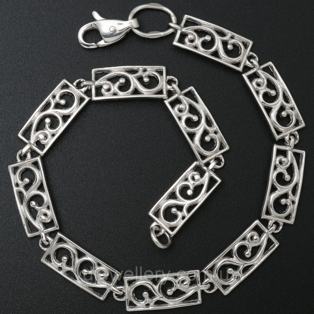 Браслет сделан из серебра 925 пробы. На браслет нанесено покрытие из родия. Длины: 17-18-19-20-21-22-23см.