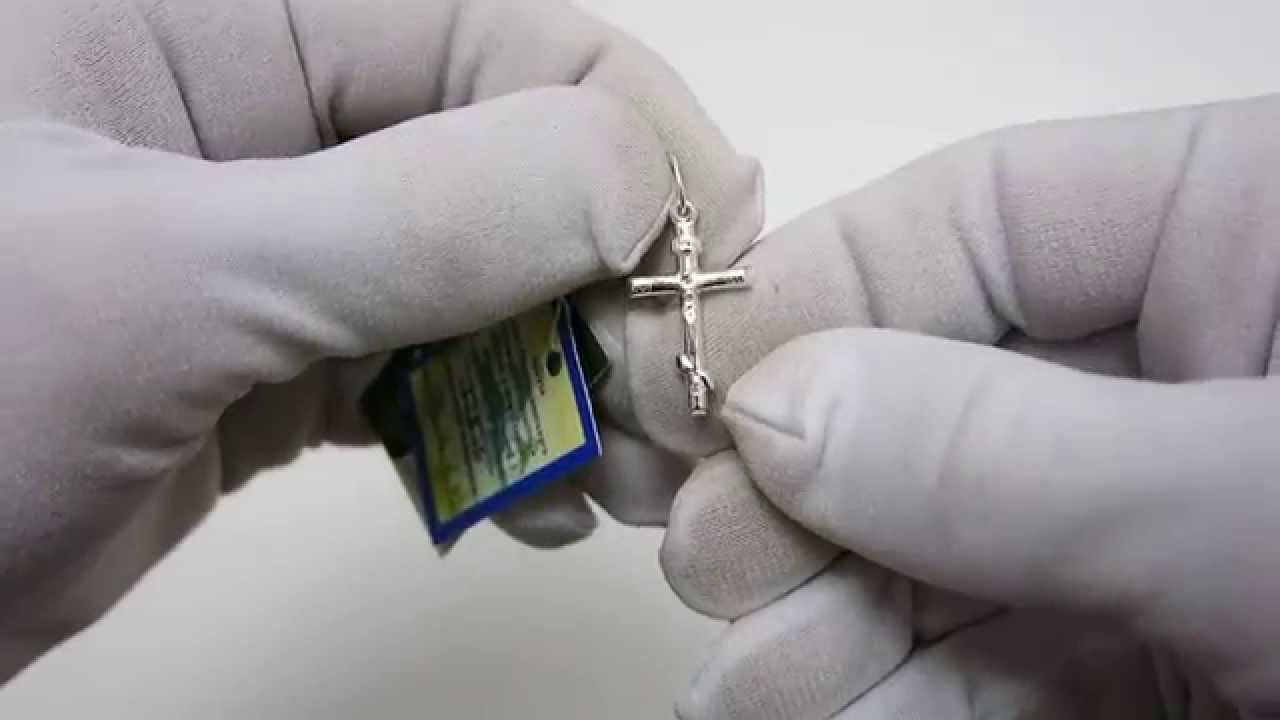 Хрестик зі срібла 925 проби. На зворотному боці хрестика нанесена лазерне гравіювання: "Спаси і збережи". Довжина-2.5см, ширина-1.4см. Вага-0.9гр.