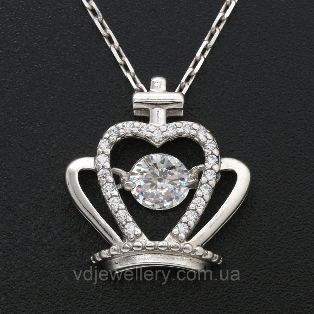Жіночий кулон. Кулон зроблений з срібла 925 проби. На кулон нанесено покриття з родію. Камінчик в середині кулона від руху постійно бовтається. Камені-фіаніт. Вага-3.1гр.