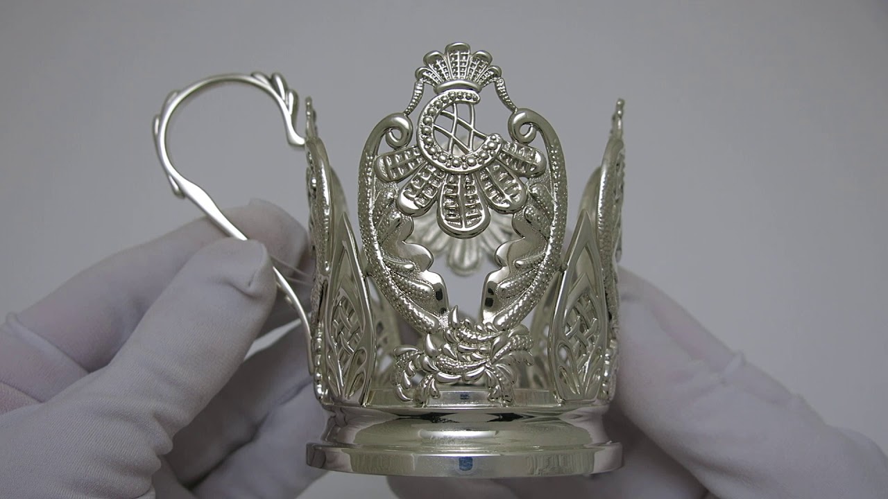 Підстаканник зроблена зі срібла 925 проби. Довжина підсклянника-8.7см, ширина-7.3см. Вага-153гр.
