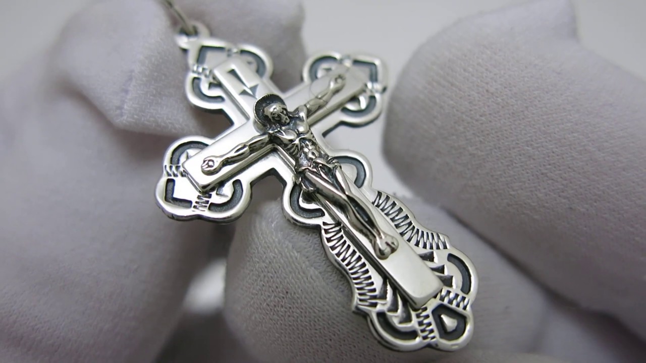 Хрестик зі срібла 925 проби. На лицьовому боці хрестика зроблена ручне гравірування. На зворотному боці хрестика зроблена лазерне гравіювання: "Спаси і збережи". На хрестик нанесено чорніння. Довжина хрестика-3.7см, ширина-2.3см.