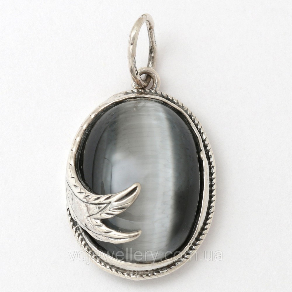 Кулон зроблений з срібла 925 проби. На кулон нанесено чорніння. Вага-4.1гр. Виробник робить кулони з різними каменями.