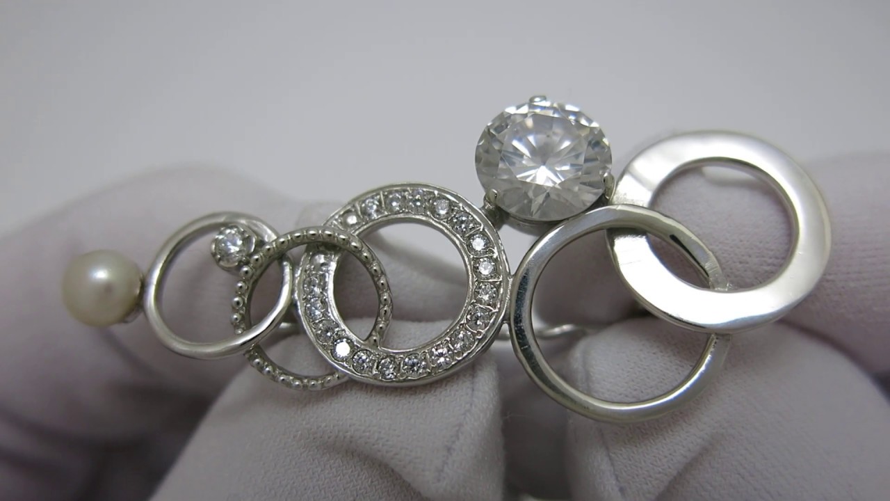 Зробити замовленняЖіноча брошка. Брошка зроблена зі срібла 925 проби. На брошку нанесено покриття з родію. Камені-фіаніт і одна перлина. Вага-6.1гр.