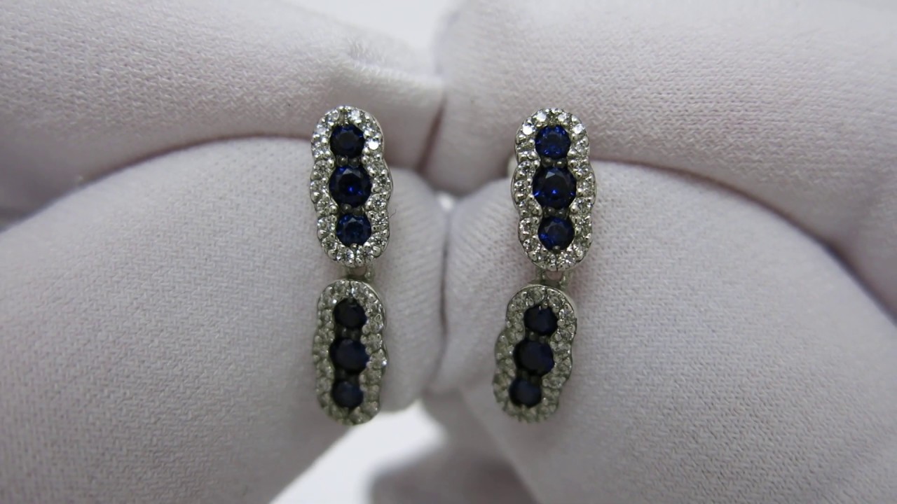 Сережки зроблені з срібла 925 проби. На сережки нанесено покриття з родію. Камінь-синтетичний сапфір.
