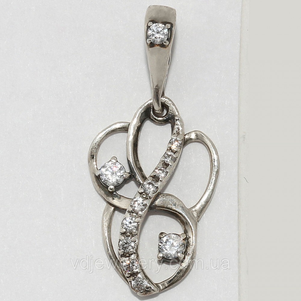 Кулон зроблений з срібла 925 проби. На кулон нанесено чорніння. Камені-фіаніт. Довжина-2см, ширина-1.3см. Вага-1.3гр.