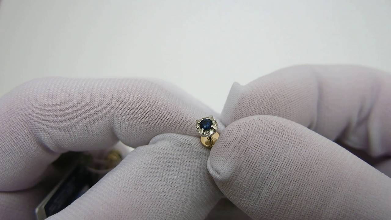 Сережки зроблені з золота 585 проби. Камені в сережках: сапфір і діаманти. Довжина-1.35 см, ширина-5мм. Вага-1.5гр.