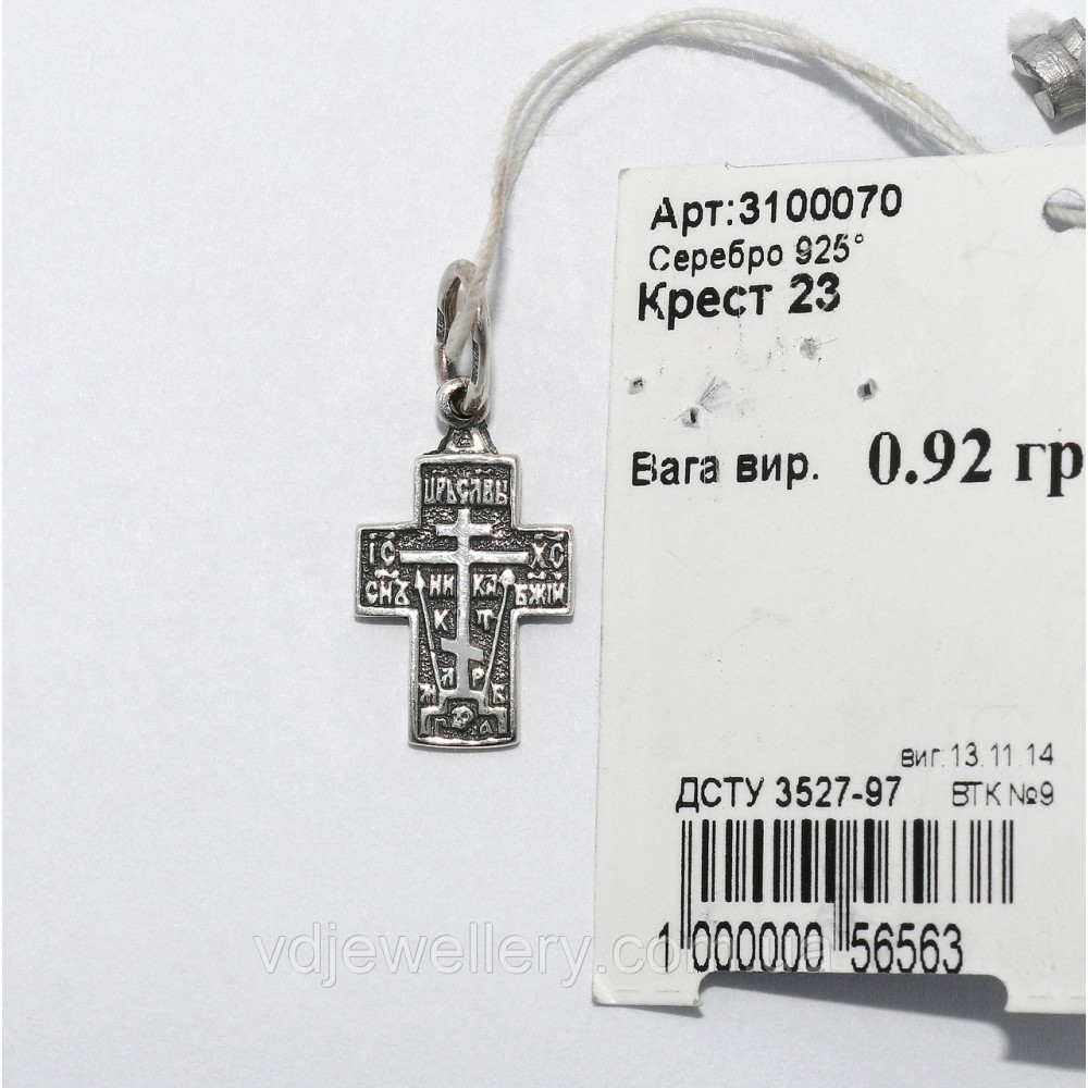 Зробити замовленняХрестик зроблений з срібла 925 проби. На хрестик нанесено чорніння. Довжина-1.75см, ширина-1.05см. Вага-0.85гр.