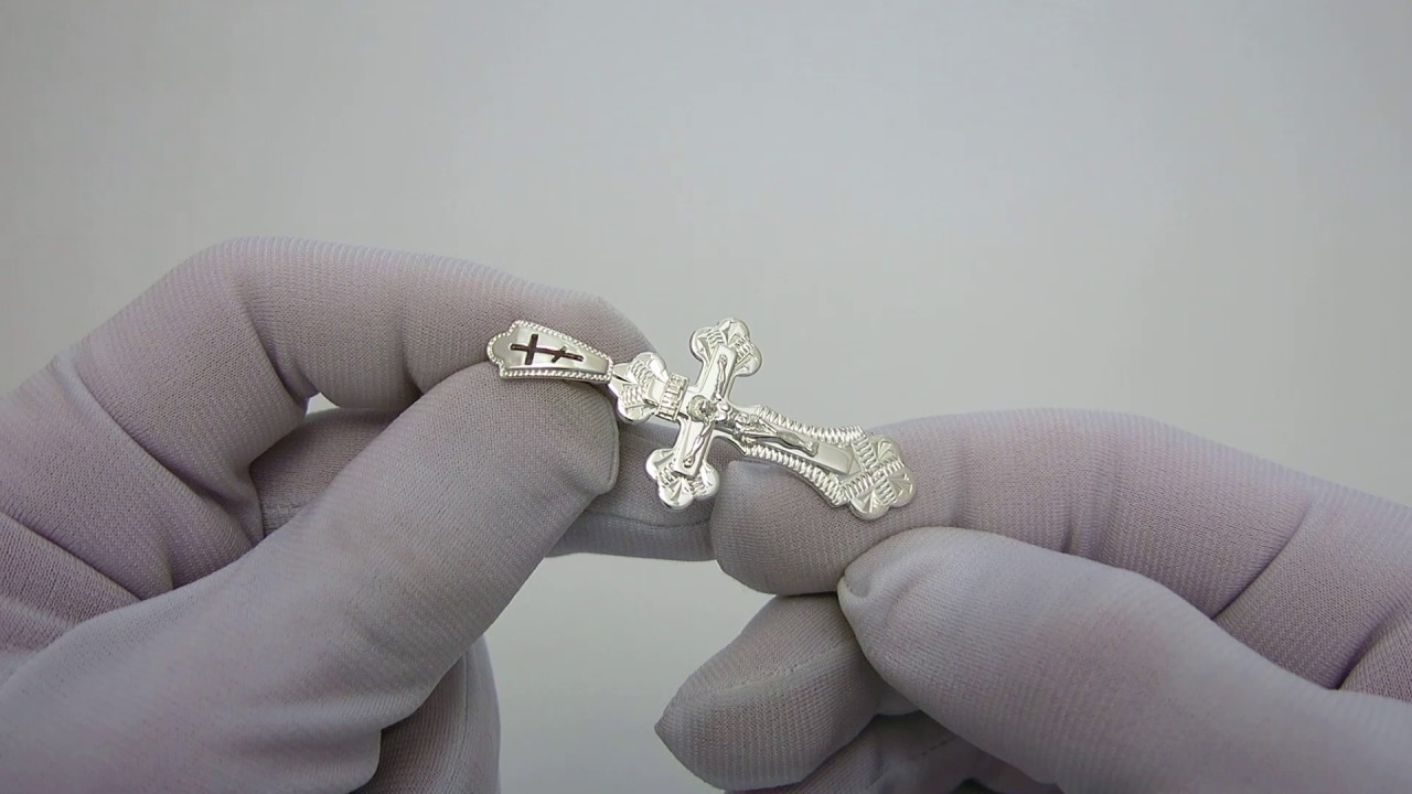 Універсальний хрестик. Хрестик зроблений з срібла 925 проби. На хрестику зроблена ручне гравірування. На зворотному боці хрестика зроблена лазерне гравіювання. Довжина-5.4см, ширина-2.6см. Вага-6.4гр.
