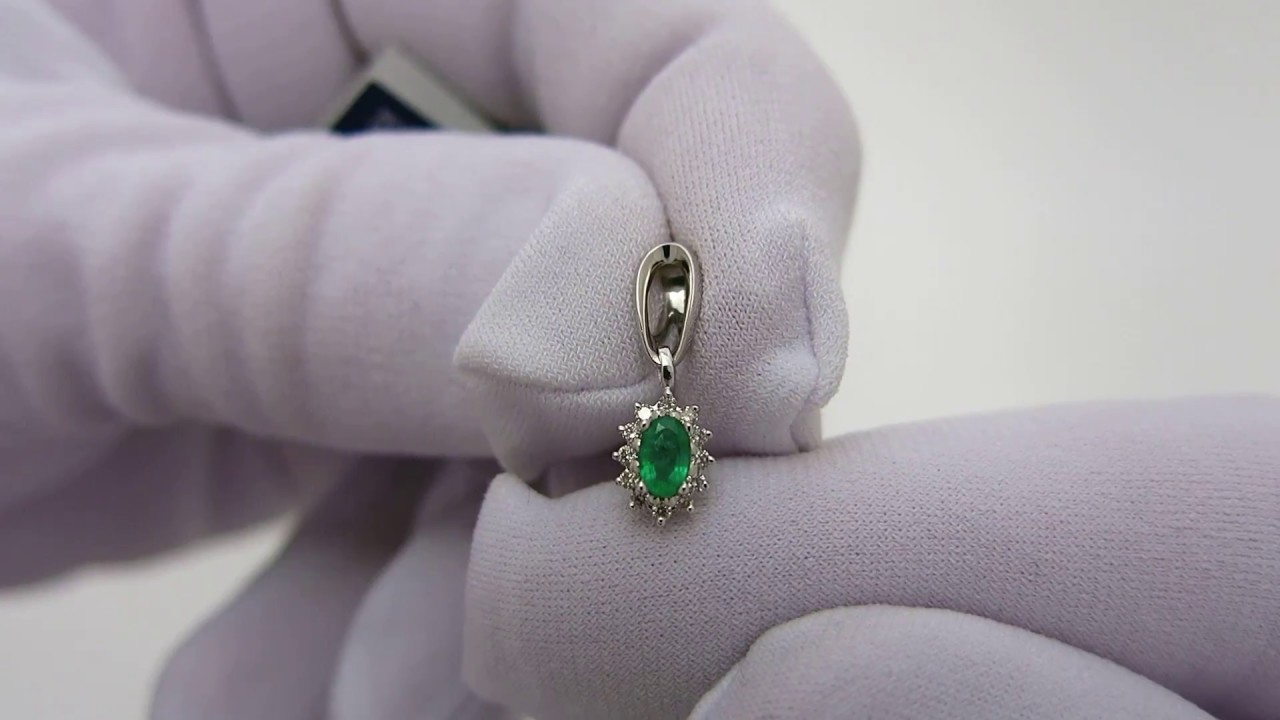 Жіночий кулон. Кулон зроблений з білого золота 585 проби. Каміння: діаманти і смарагд. Вага-0.8гр.