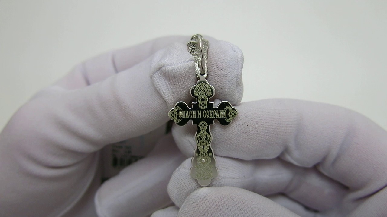 Хрестик зроблений з срібла 925 проби. На хрестик нанесено покриття з родію. На хрестику зроблена напайка із золота 375 проби. Вага-4.9гр.