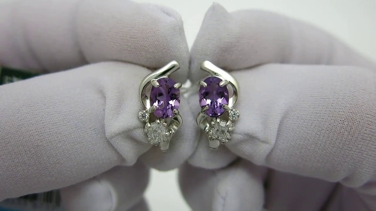 Сережки зроблені з срібла 925 проби. На сережки нанесено покриття з родію. Камінь-аметист.