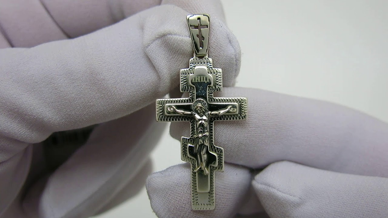 Хрестик зі срібла 925 проби. На лицьовому боці хрестика зроблена ручне гравірування. На зворотному боці хрестика лазерне гравіювання. На хрестик нанесено чорніння.