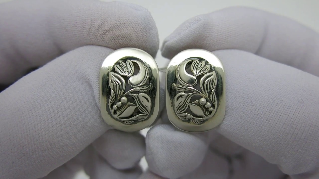 Жіночі сережки. Сережки зроблені з срібла 925 проби. На сережки нанесено чорніння.