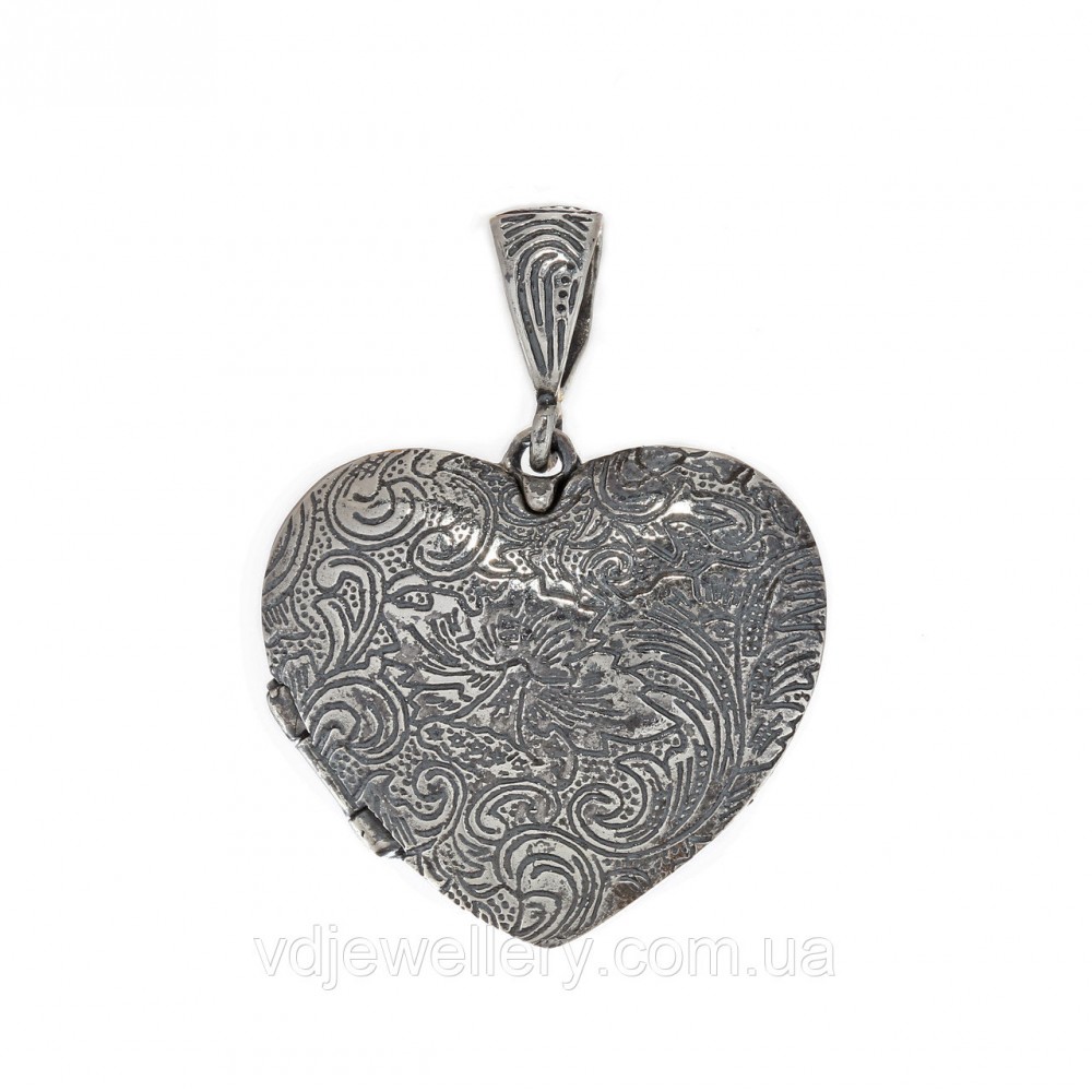 Зробити замовленняКулон зроблений з срібла 925 проби. На кулон нанесено чорніння. Кулон розкривається і всередину можна покласти фотографію. Висота серця-2,2см, ширина-2,5см.Вага-8.4гр.