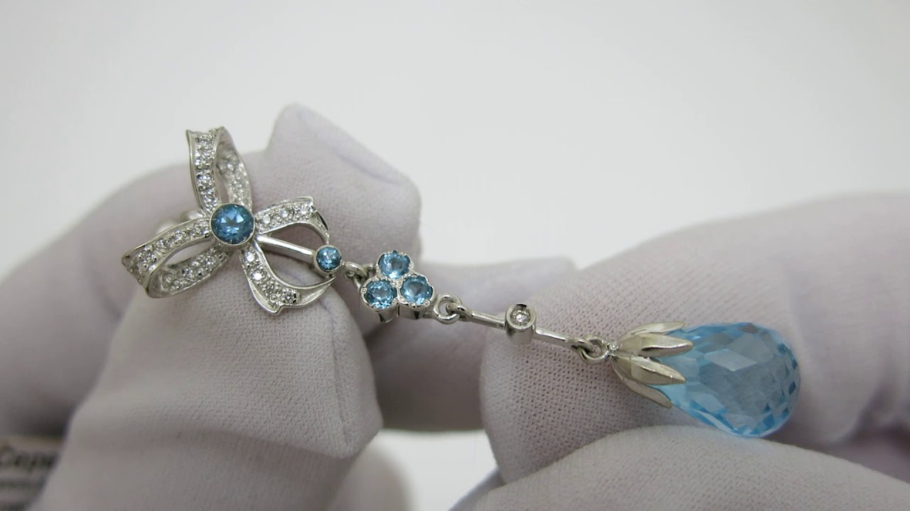 Жіночі сережки. Сережки зроблені з золота 585 проби. Камені-діаманти, топаз. Вага-9.6гр.