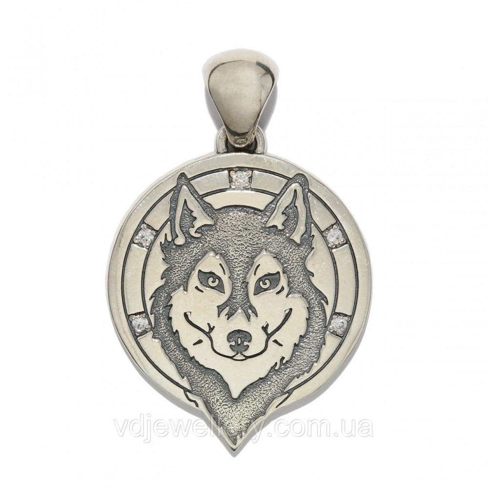 Кулон зроблений з срібла 925 проби. На кулон нанесено чорніння. Довжина-3.6см, ширина-2.9см. Камені-фіаніт. Вага-8.5гр.