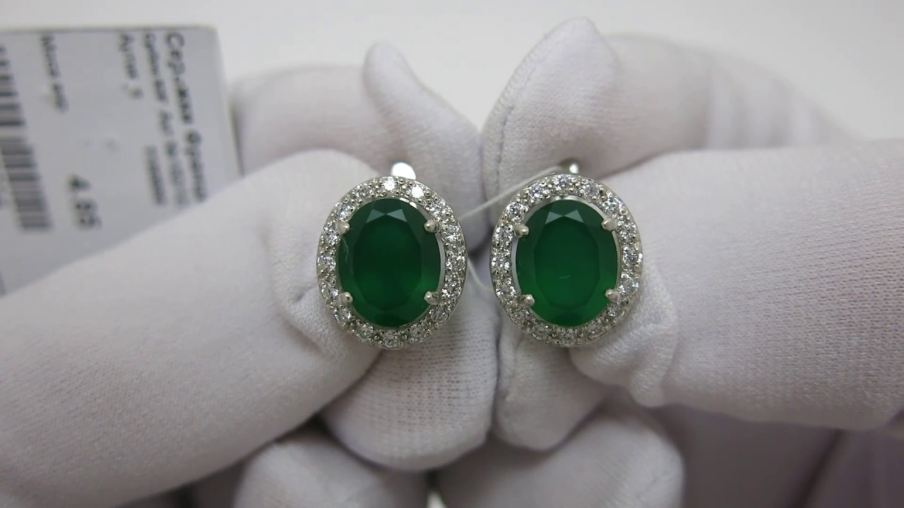 Сережки зроблені з срібла 925 проби. На сережки нанесено покриття з родію. Камені: онікс зелений і фіаніт.