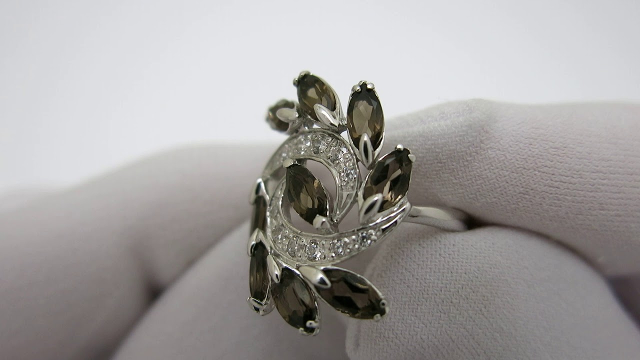 Жіноче кільце. Кільце зроблено зі срібла 925 проби. На кільце нанесено покриття з родію. Камінь-раухтопаз. Вага-3.5гр. Розміри: 16-17-18-19-20-21.