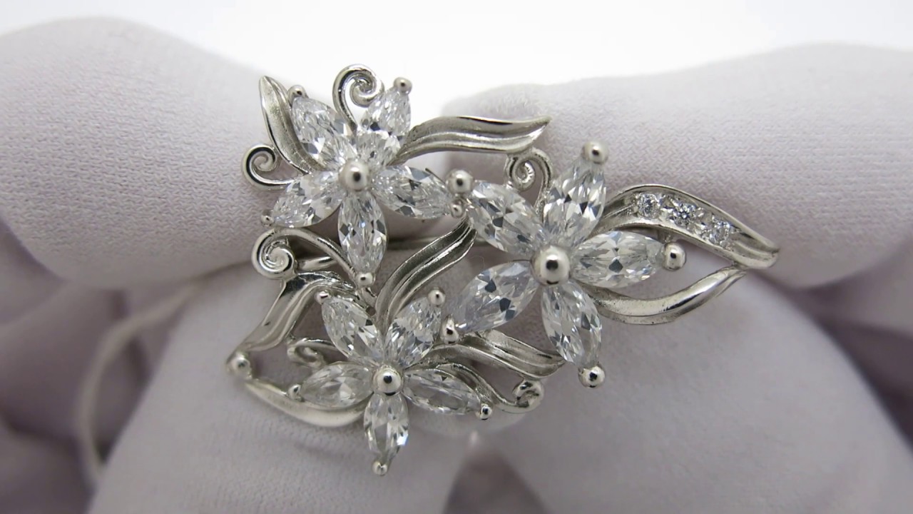 Жіноча брошка. Брошка зроблена зі срібла 925 проби. На брошку нанесено покриття з родію. Камені-фіаніт. Вага 5.5гр.
