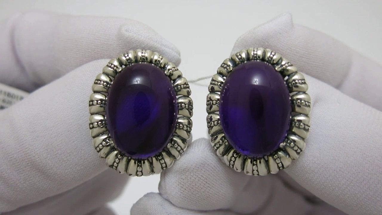 Жіночі сережки. Сережки зроблені з срібла 925 проби. На сережки нанесено чорніння. В сережках стоїть імітація каменю аметист.