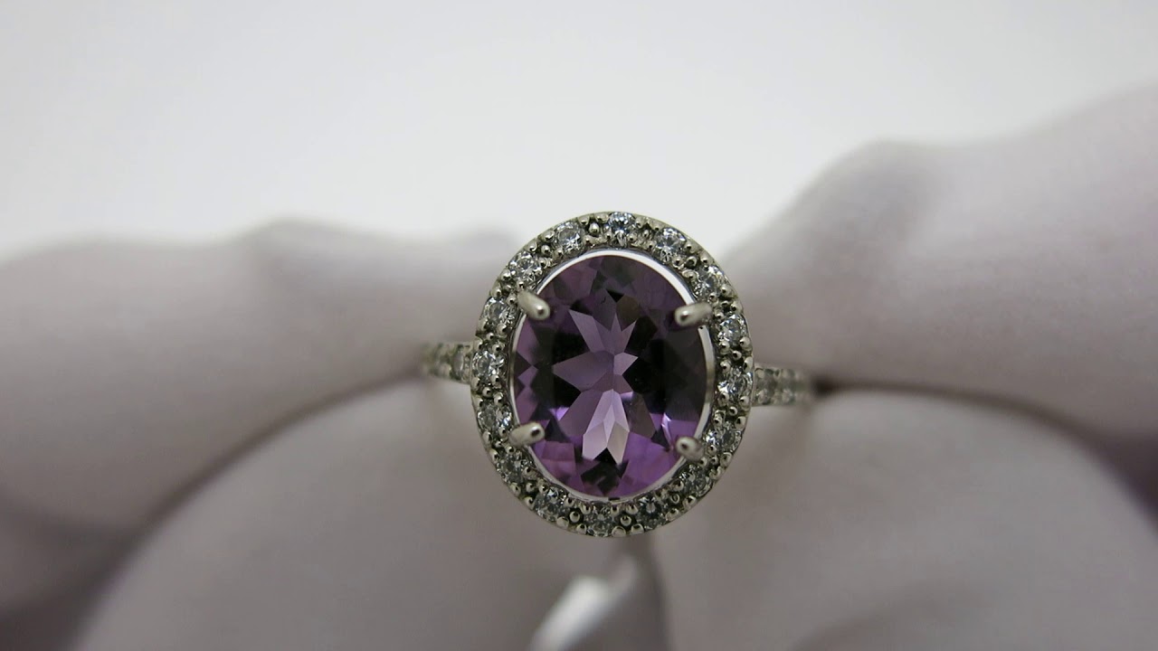 Жіноче кільце. Кільце зроблено зі срібла 925 проби. На кільце нанесено покриття з родію. Камінь-аметист. Вага-2.5гр. Розміри: 16-17-18-19-20-21.