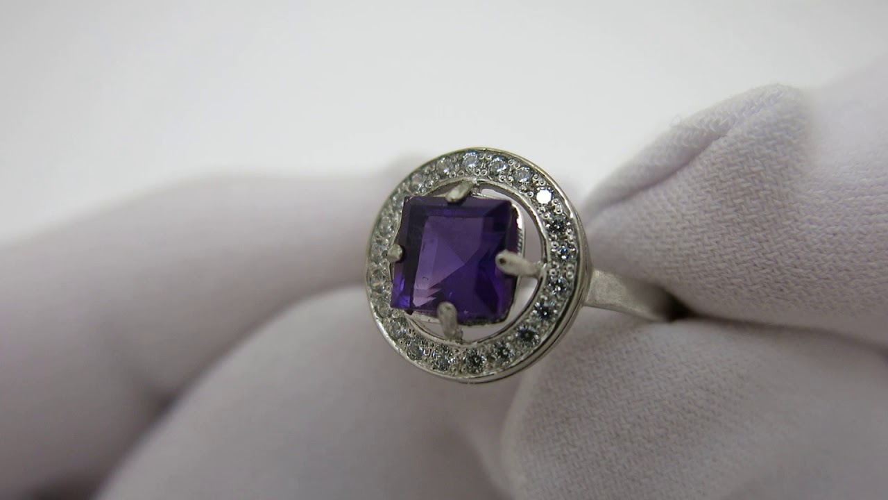 Жіноче кільце. Кільце зроблено зі срібла 925 проби. На кільце нанесено покриття з родію. Камінь-аметист. Вага-1.6гр. Розміри: 16-17-18-19-20.