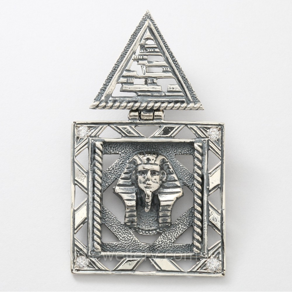 Кулон зроблений з срібла 925 проби. На кулон нанесено чорніння. Камені-фіаніт. Вага-7.7гр.