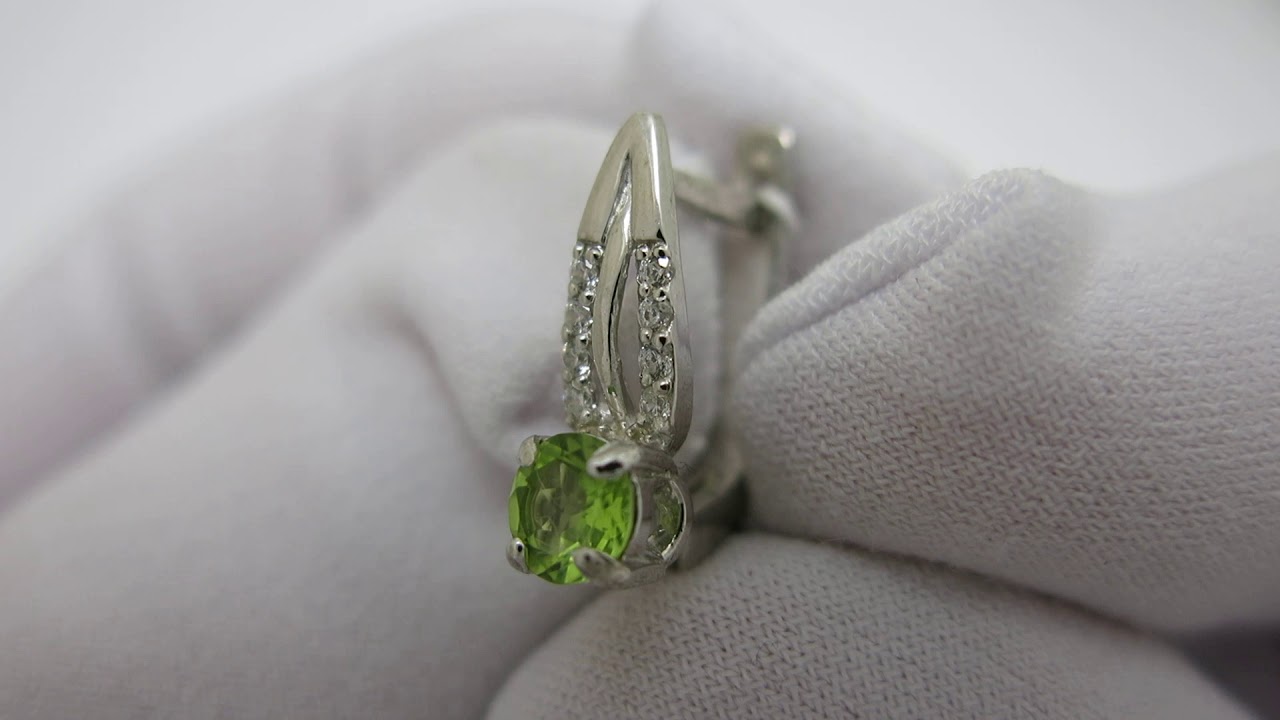 Сережки зроблені з срібла 925 проби. На сережки нанесено покриття з родію. Камені: хризоліт.
